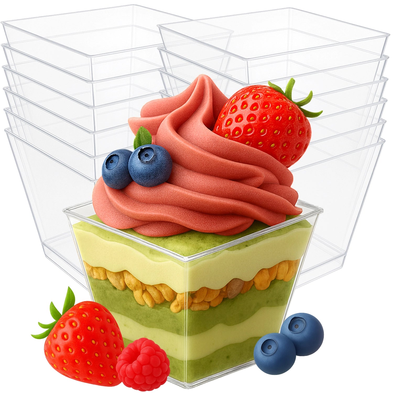 Die transparenten BEAUTIONA® Dessertbecher mit 120 ml Fassungsvermögen eignen sich perfekt für Desserts, Mousses, Gelees, Miniportionen und kreative Snacks. Dank der klaren Wände wird der Inhalt elegant präsentiert, was sie ideal für Partys, Catering, Hochzeiten und besondere Anlässe macht. Stabil, leicht und bequem zu servieren – ein praktischer Einwegbecher für professionelle und private Veranstaltungen. Im Set enthalten sind 50 Stück.