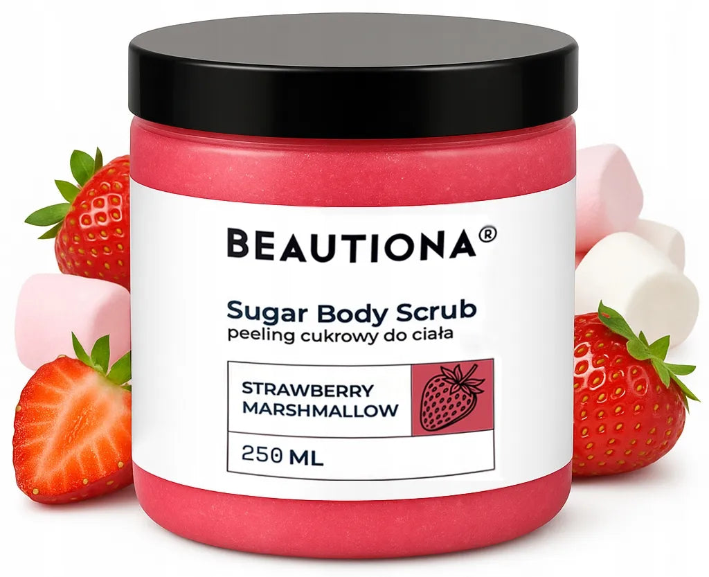 Duft des Peelings: Erdbeer-Schaum – Strawberry Marshmallow.