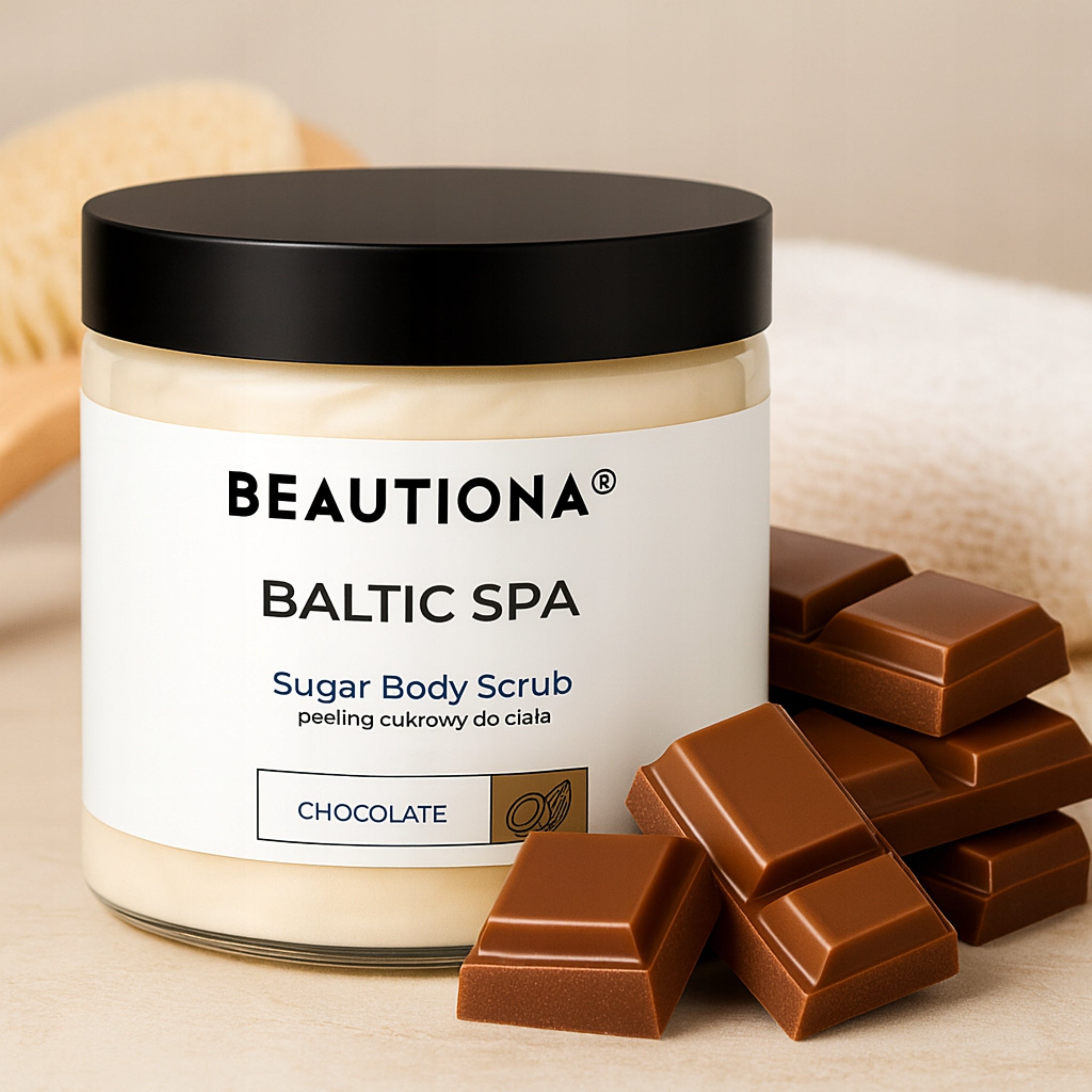 Das BEAUTIONA® Baltic Spa Zuckerpeeling mit Schokoladenduft ist eine harmonische Kombination aus natürlichen Zuckerkristallen und pflegenden Ölen mit dem warmen, umhüllenden Aroma von süßer Schokolade – eine perfekte Kombination für Haut und Sinne.