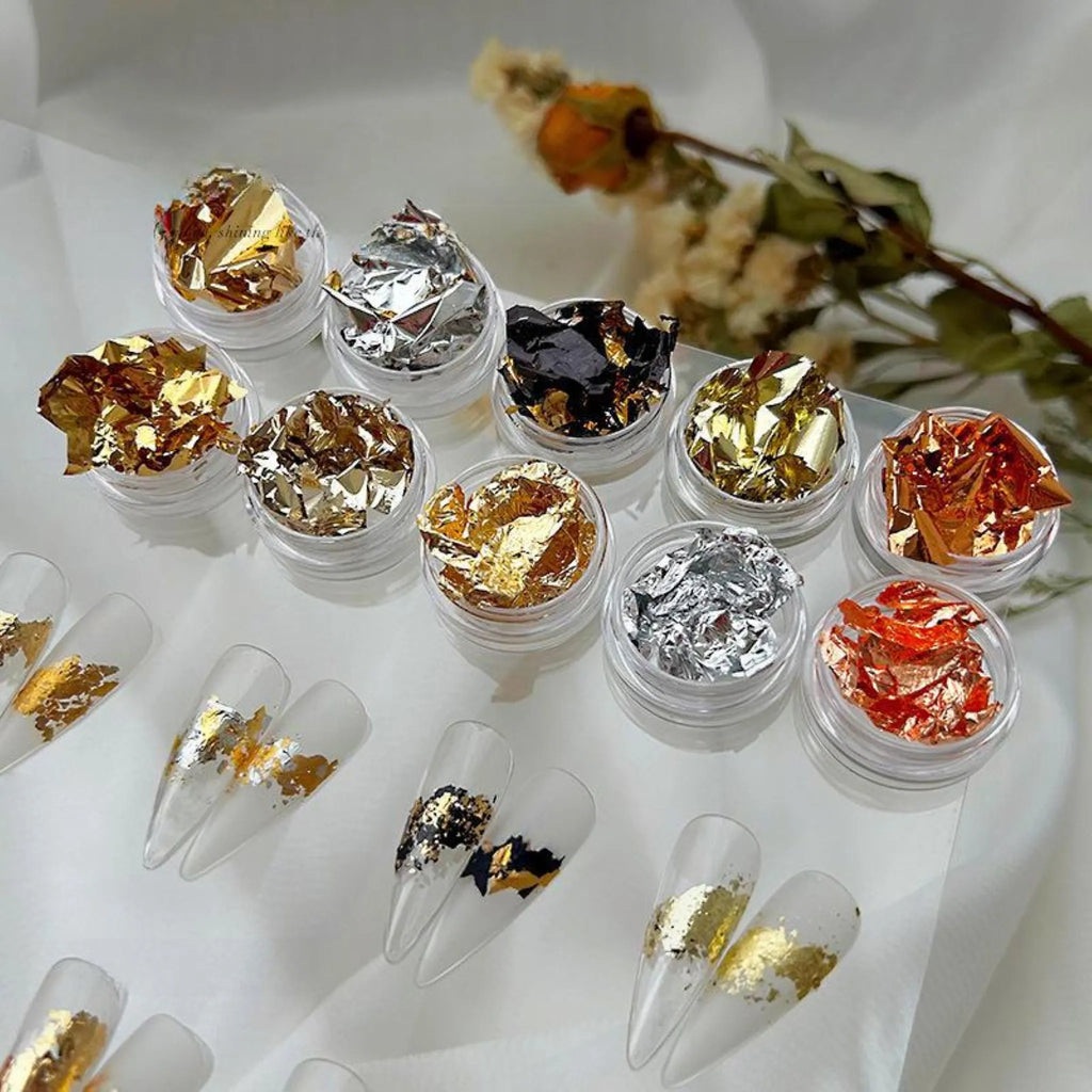 Das Set enthält 12 Folien zum Verzieren der Nägel mit verschiedenen Methoden.