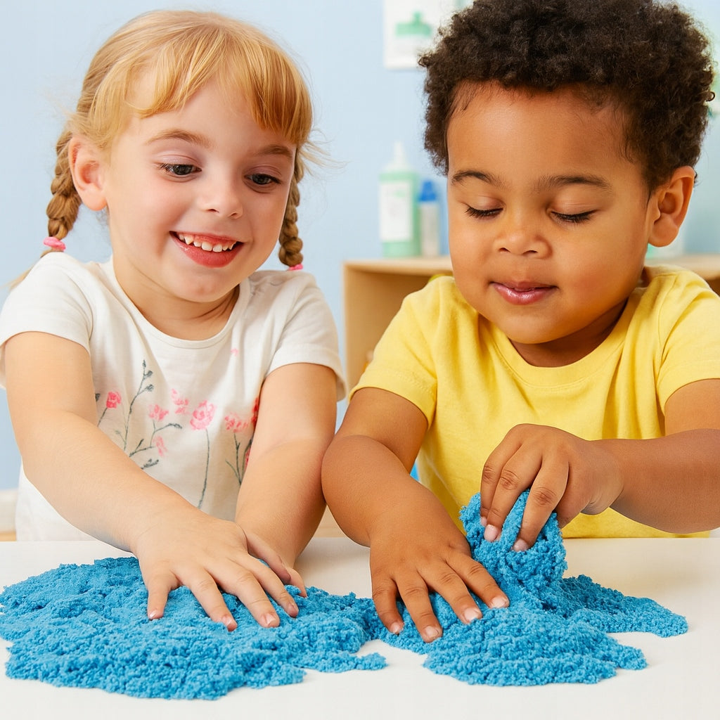 Kinetischer magischer Sand 1 kg – blau ist ein außergewöhnliches Material, das die Vorteile von Knete, klassischem Sand und Modelliermassen vereint. Dank seiner speziellen, formbaren Formel trocknet der Sand niemals aus – er bleibt weich, rieselfähig, angenehm klebrig und gleichzeitig leicht zu modellieren, ohne die Hände zu verschmutzen.