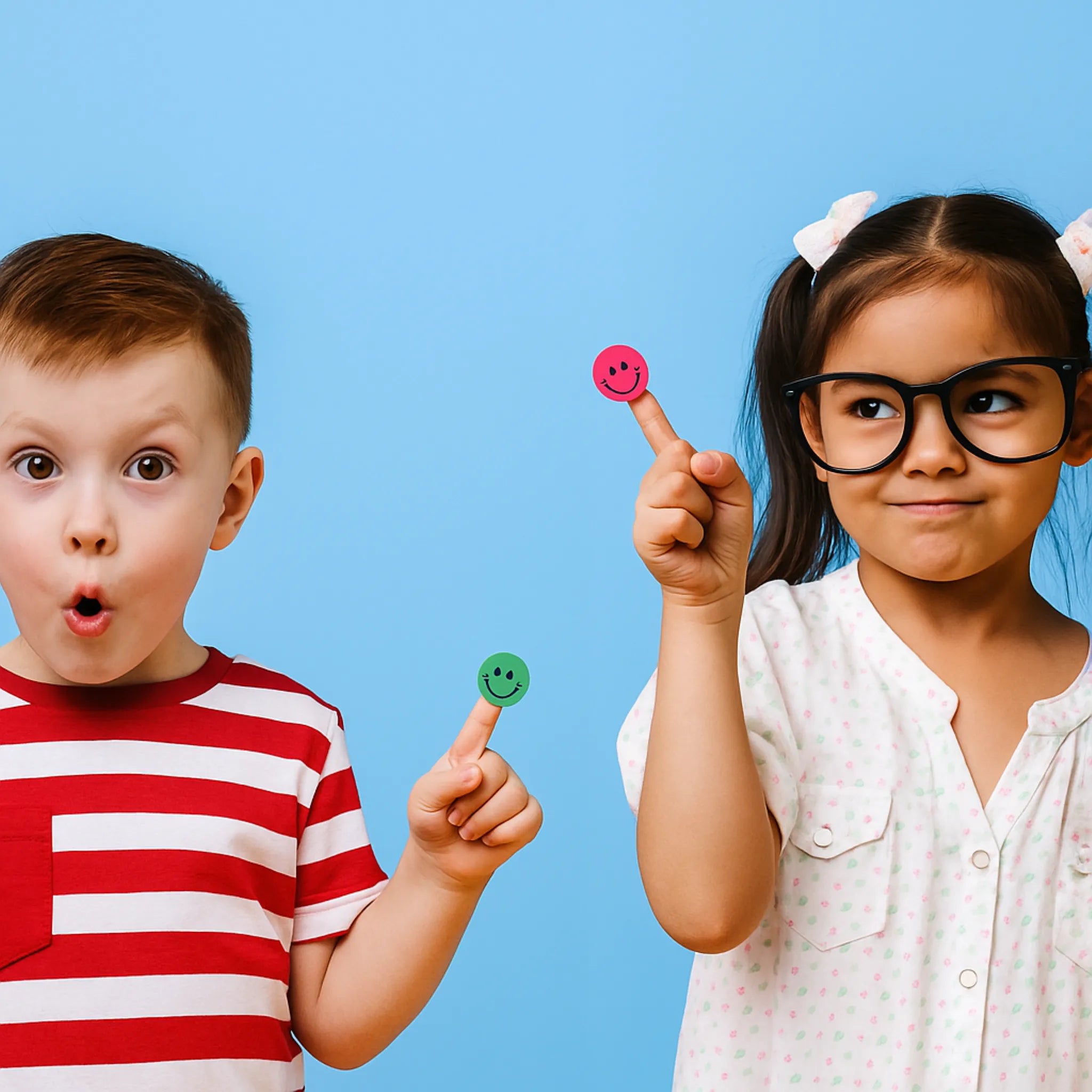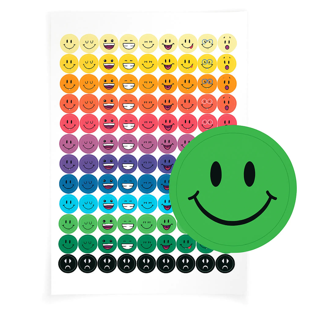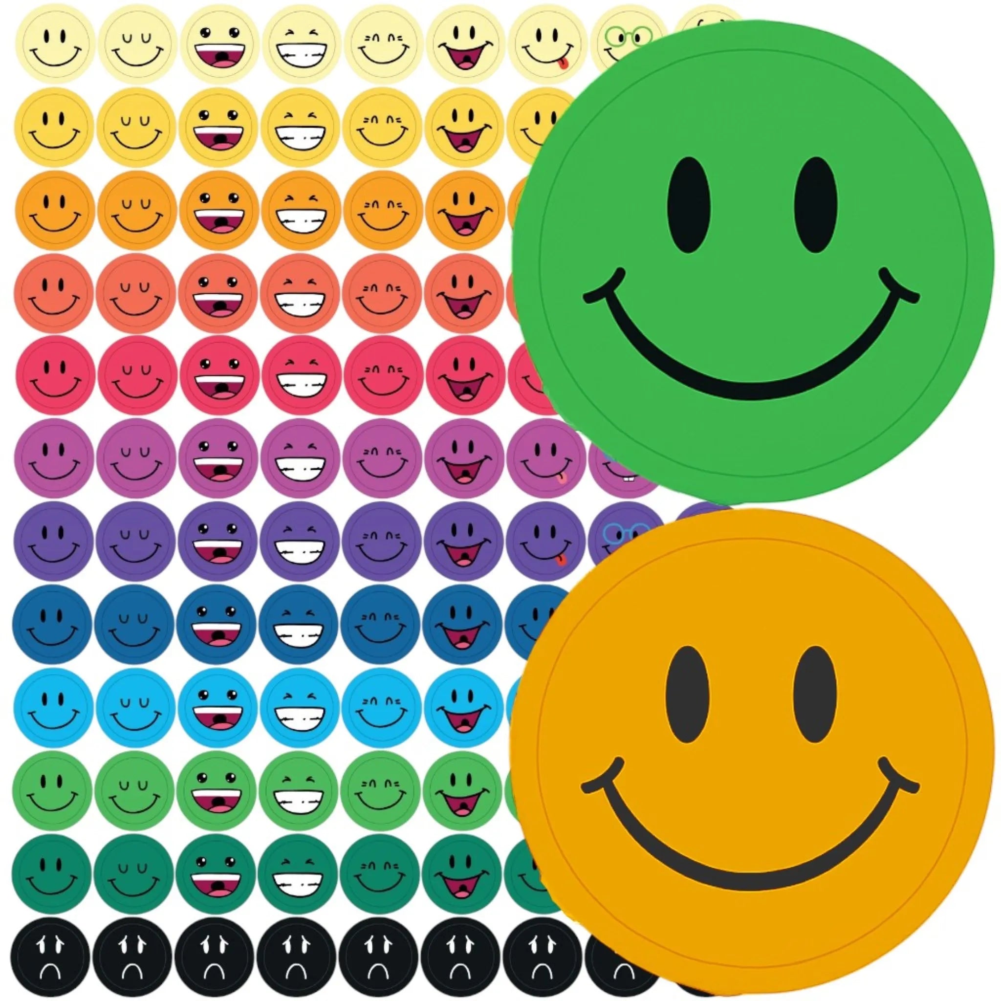 Bunte Aufkleber mit fröhlichen Emotionen sind ideal, um Kinder zu belohnen und zu positivem Verhalten zu motivieren.