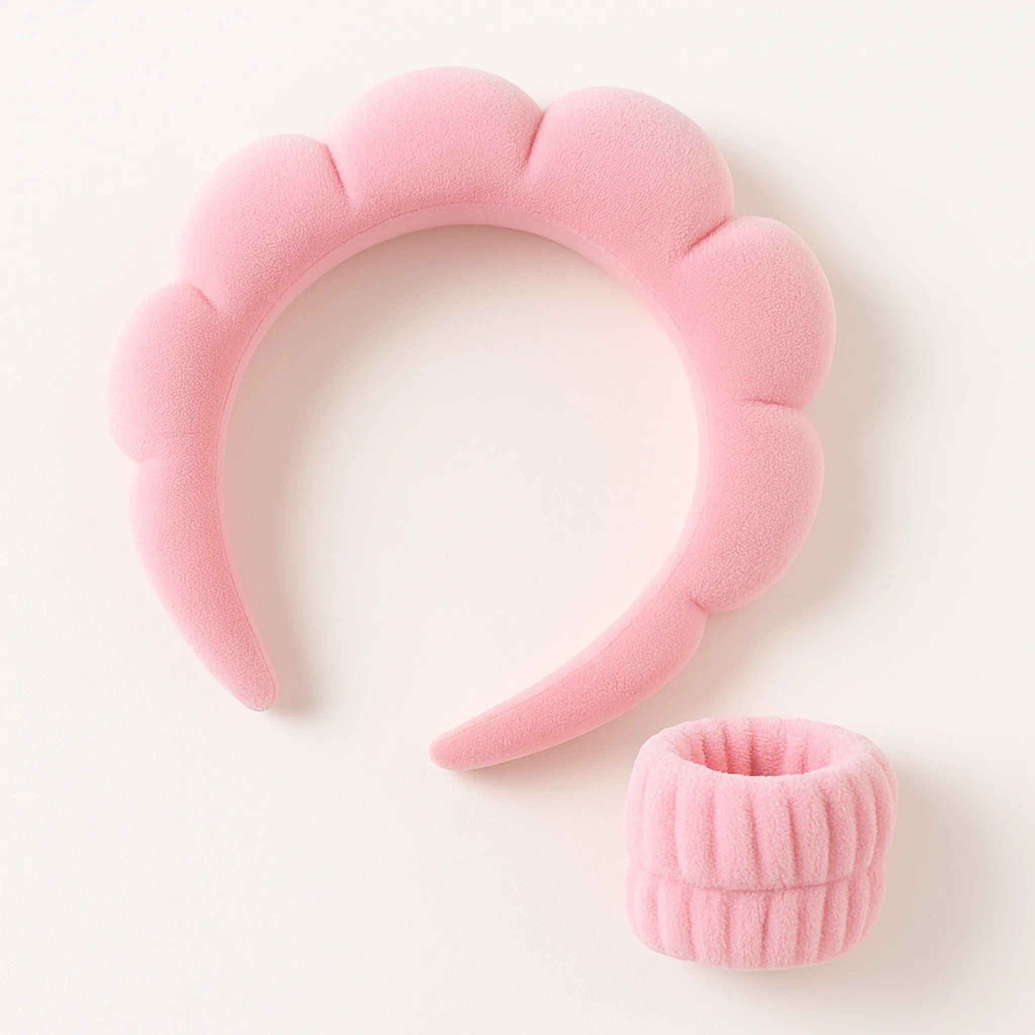 Kosmetisches Stirnband und Make-up-Armband rosa