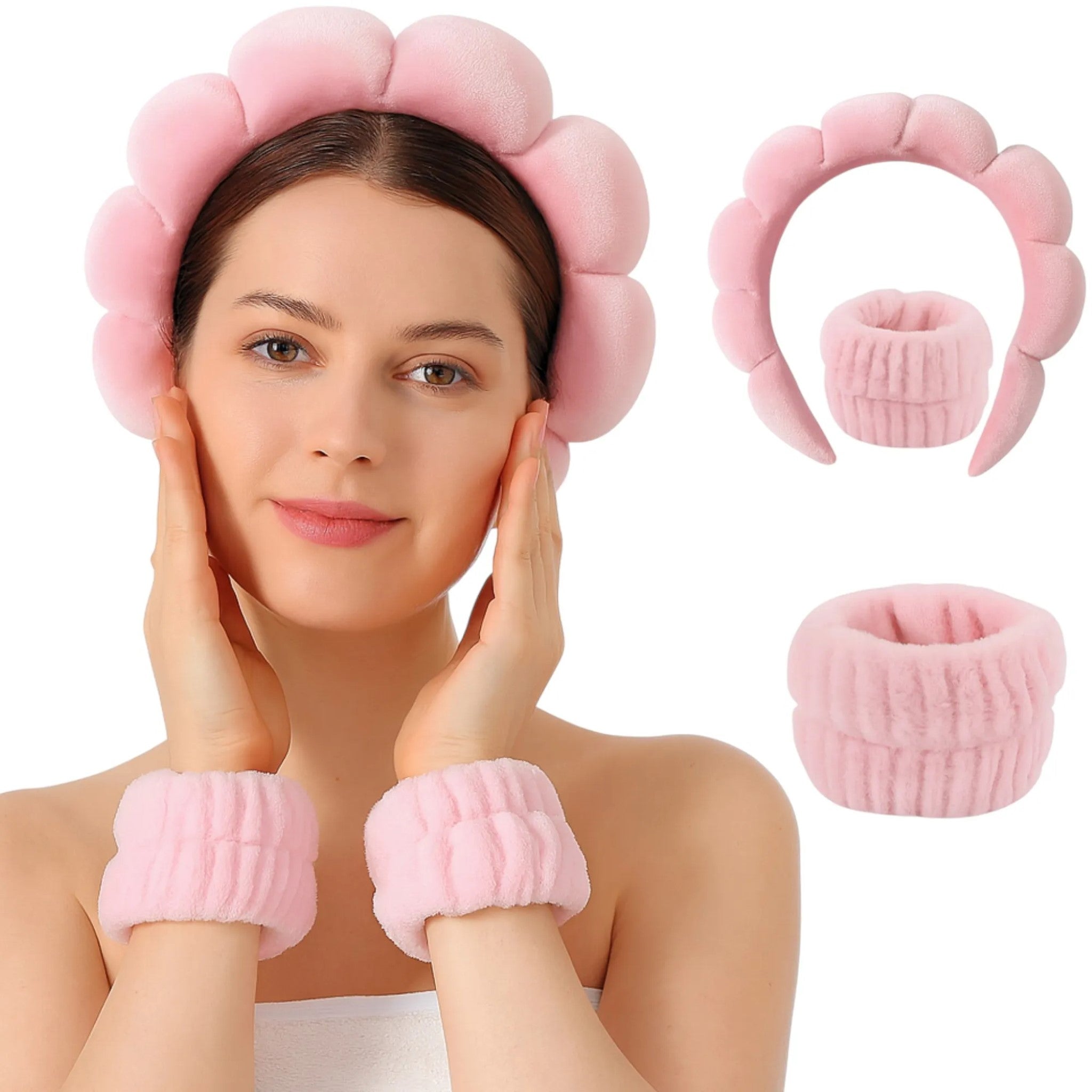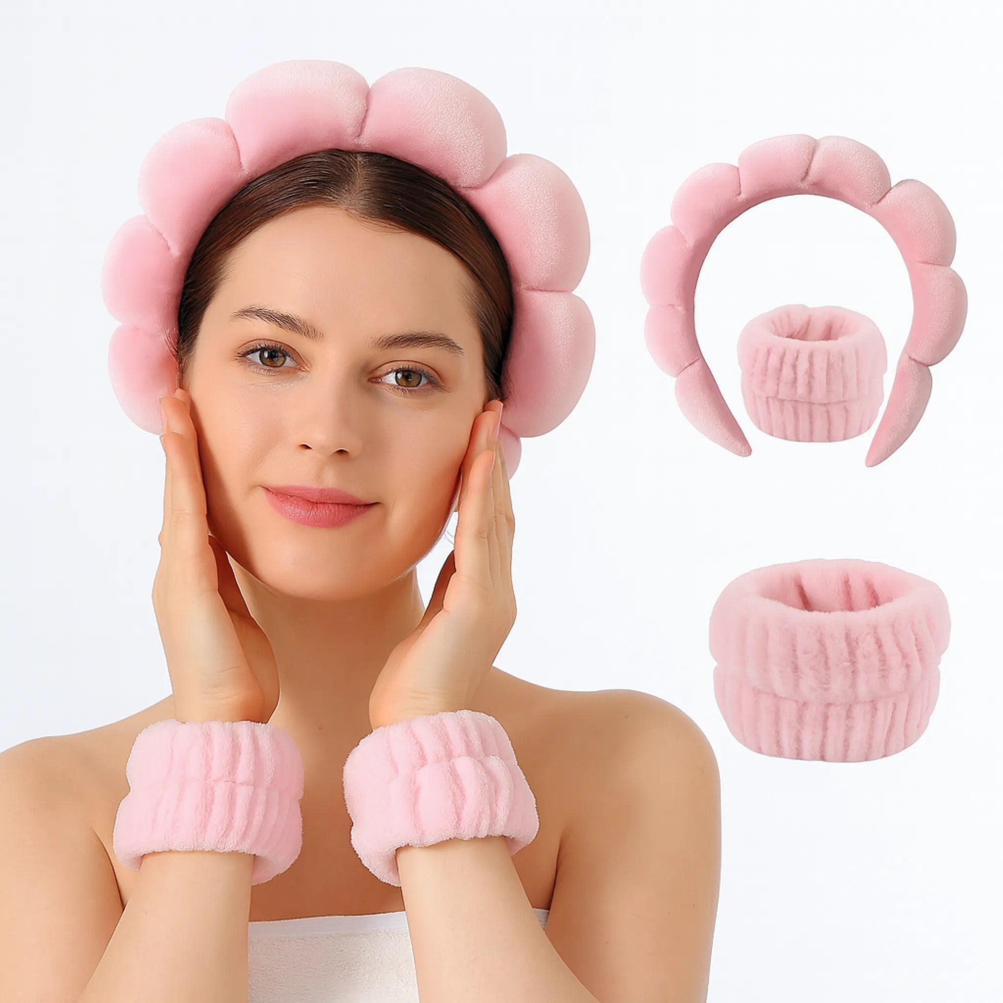 Kosmetisches Stirnband und Make-up-Armband Rosa