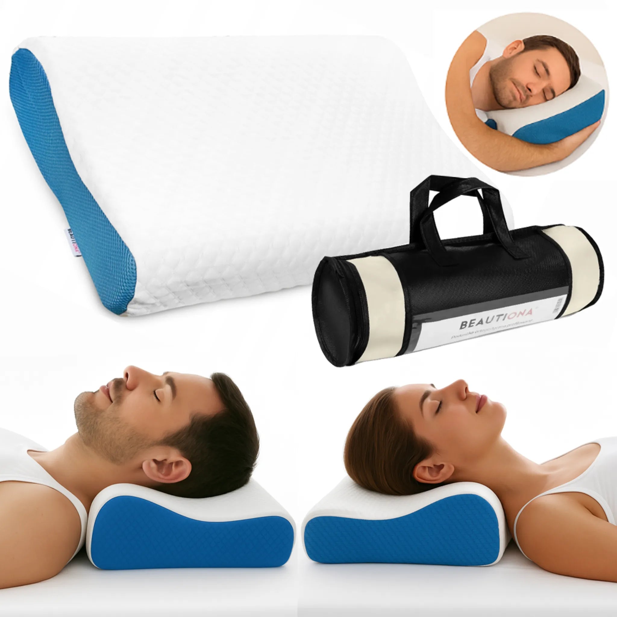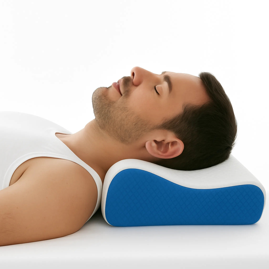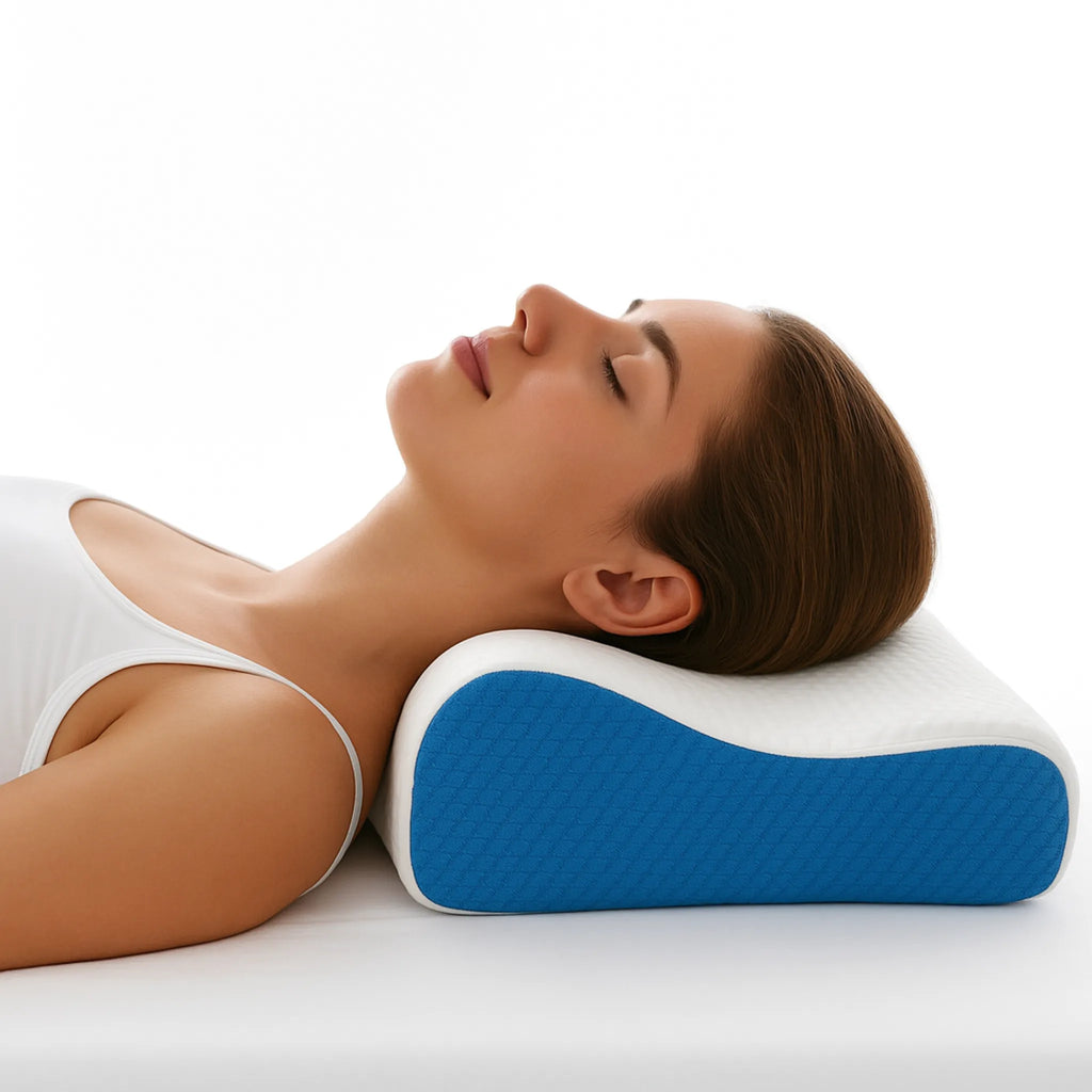 Unser orthopädisches Kissen wurde so konzipiert, dass es auf natürliche Weise die richtige Position von Kopf, Nacken und Wirbelsäule während des Schlafs unterstützt.