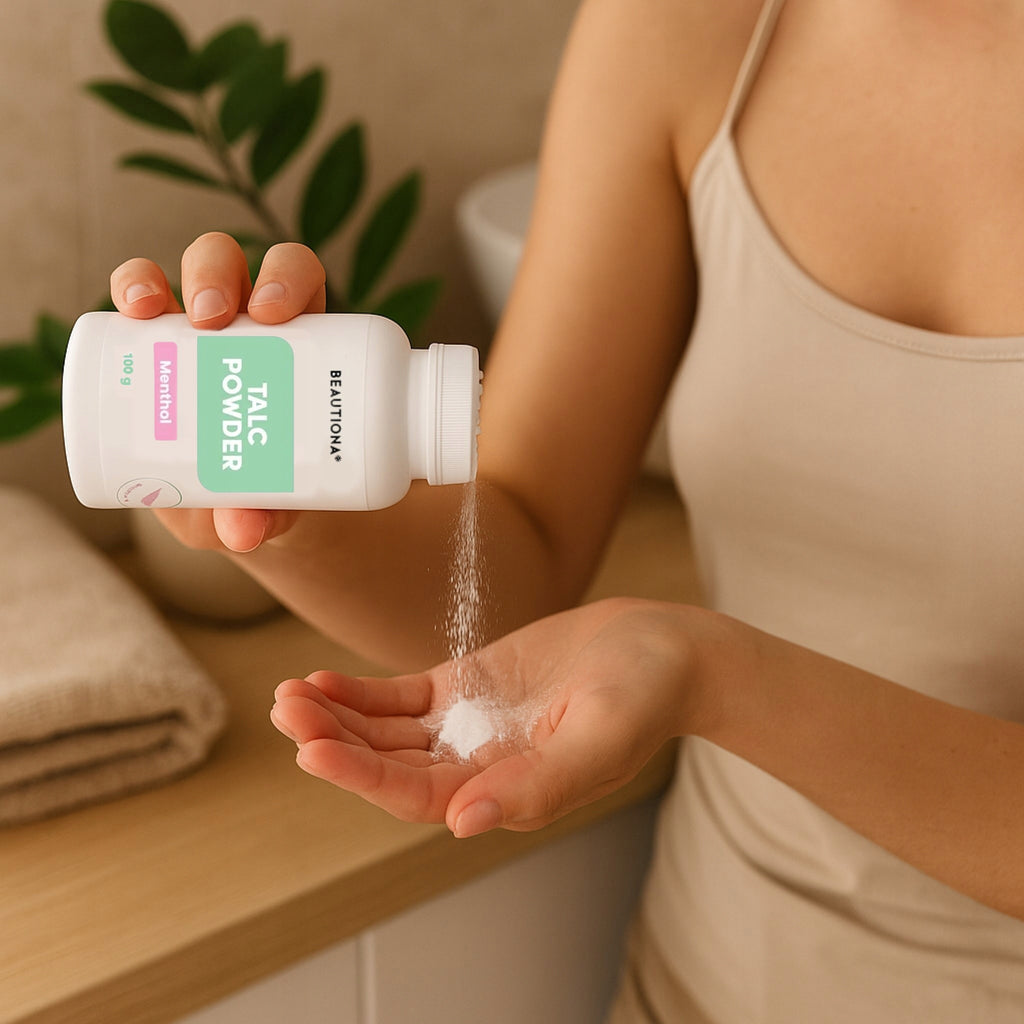 Kosmetisches Talkum ist ein vielseitiges Produkt, das sich perfekt für das Nagelstyling eignet und ein glattes und mattes Finish verleiht. Bei der Enthaarung ist es unverzichtbar, da es Reizungen lindert und die Reibung verringert. Außerdem ist er ideal für das Make-up, da er Kosmetika fixiert und den ganzen Tag über für ein mattes Finish sorgt.